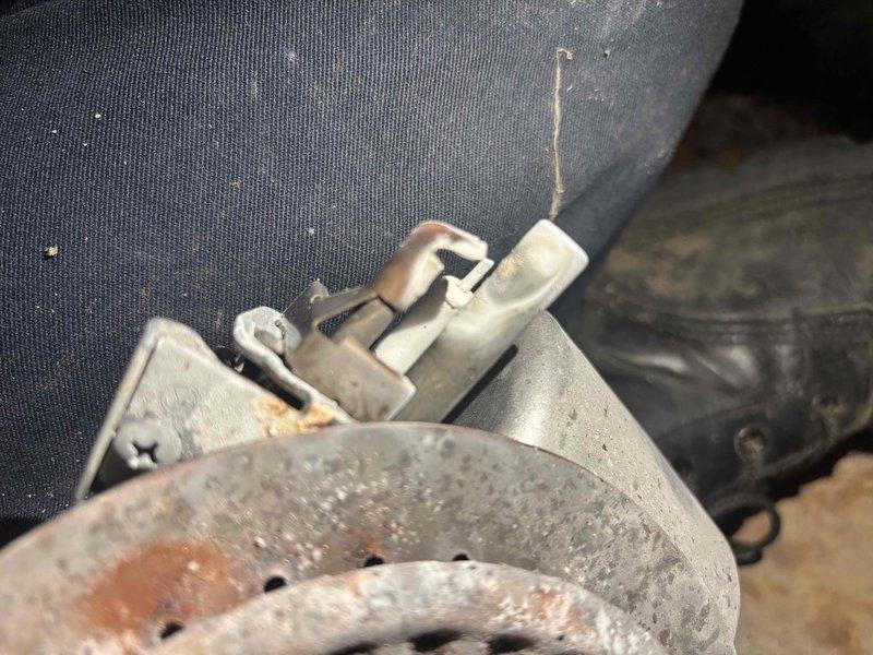 Responded to kitchen sink backup issue occurring during dishwasher operation. Upon inspection, identified significant debris and buildup accumulation in the drain assembly causing restricted water flow. Removed and cleaned the drain strainer, which exhibited heavy grime, tarnishing, and organic matter buildup on the metal cross-strainer mechanism. Cleared the drain line using appropriate tools to restore proper drainage capacity. Tested the system by running the dishwasher to verify water flows freely without backup. Drainage issue resolved successfully.